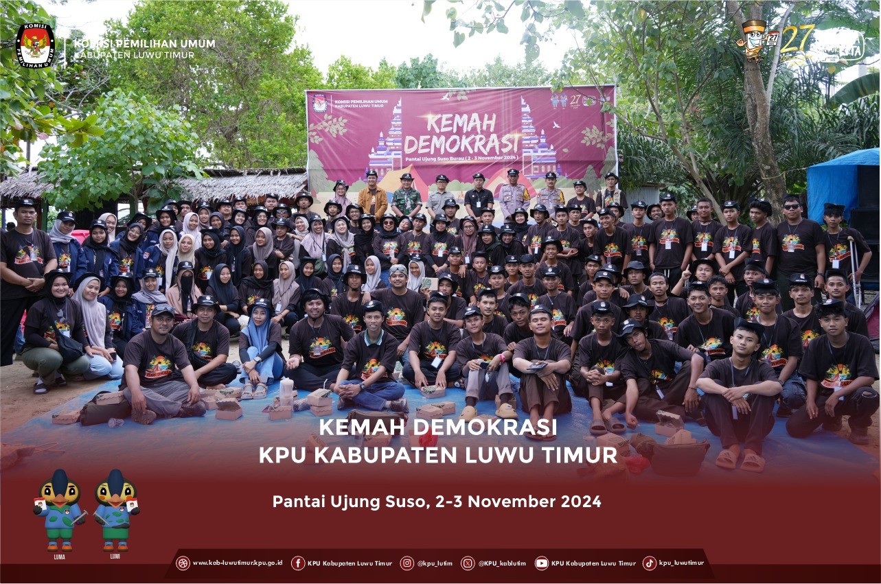 Komisi Pemilihan Umum (KPU) Kabupaten Luwu Timur menggelar Kemah Demokrasi yang berlangsung di Pantai Ujung Suso Kecamatan Burau, 2-3 November 2024. Kemah demokrasi ini digelar menjelang Pemilihan Bupati dan Wakil Bupati Kabupaten Luwu Timur dalam Pilkada serentak yang bakal dilangsungkan pada 27 November 2024 mendatang. Acara ini melibatkan seluruh PPK Se-Kabupaten Luwu Timur, Anggota Pramuka dari Siswa dan Siswi SMA 2 Luwu Timur, SMA 7 Luwu Timur, SMA Muhammadiyah, serta Pondok Pesantren Nurul Junaidiyah. Dibuka secara resmi Kadiv Hukum dan Pengawasan, Ilhamuddin Alkadry mengatakan pentingnya membangun kesadaran pemilih termasuk para pemilih pemula, yang tetap memiliki tanggung jawab penuh untuk menyalurkan hak pilihnya. "Apa yang kita dapatkan hari ini tidak berhenti sampai disini, tapi teman-teman ini sebagai penyambung di sekitar kita, bagaimana cara kita menentukan sikap memilih calon pemimpin kita untuk lima tahun ke depan, kita punya tanggung jawab besar untuk mencapai target itu", ucapnya. Sementara itu Kadiv Sosdiklih, Parmas & SDM Indrawanto Paningaran mengatakan Kemah Demokrasi ini merupakan program yang dicanangkan oleh KPU Provinsi Sulawesi Selatan. "Kegiatan ini bagian daripada sosialisasi bagaimana supaya kita dapat memberikan informasi kepada adik-adik pramuka tentang pelaksanaan Pilkada serentak yang akan dilaksanakan di tanggal 27 November, semoga partisipasi pemilih pada pilkada ini diharapkan dapat meningkat dari pemilu 2024 sebelumnya", harapnya. Lanjutnya, mengatakan Kemah Demokrasi ini dilakukan untuk mendorong pengetahuan tentang pemilihan umum khususnya bagi para pemilih pemula. "Kemah demokrasi pada pilkada serentak 2024 ini dilaksanakan dua hari, ada beberapa materi yang dikenalkan dalam kegiatan ini termasuk bagi pemilih pemula", ungkapnya. Hadir dalam kegiatan ini Komisioner KPU Luwu Timur, Pjs. Bupati yang di wakili Kesbangpol Luwu Timur Kejaksaan Negeri Luwu Timur, Perwakilan Polres Luwu Timur, Dandim 1403, Kapolsek Burau, Danramil Wotu, Kapolsek Wotu, Kasubbag Sosdiklih, Parmas & SDM, serta Staf Sekretariat KPU Luwu Timur.