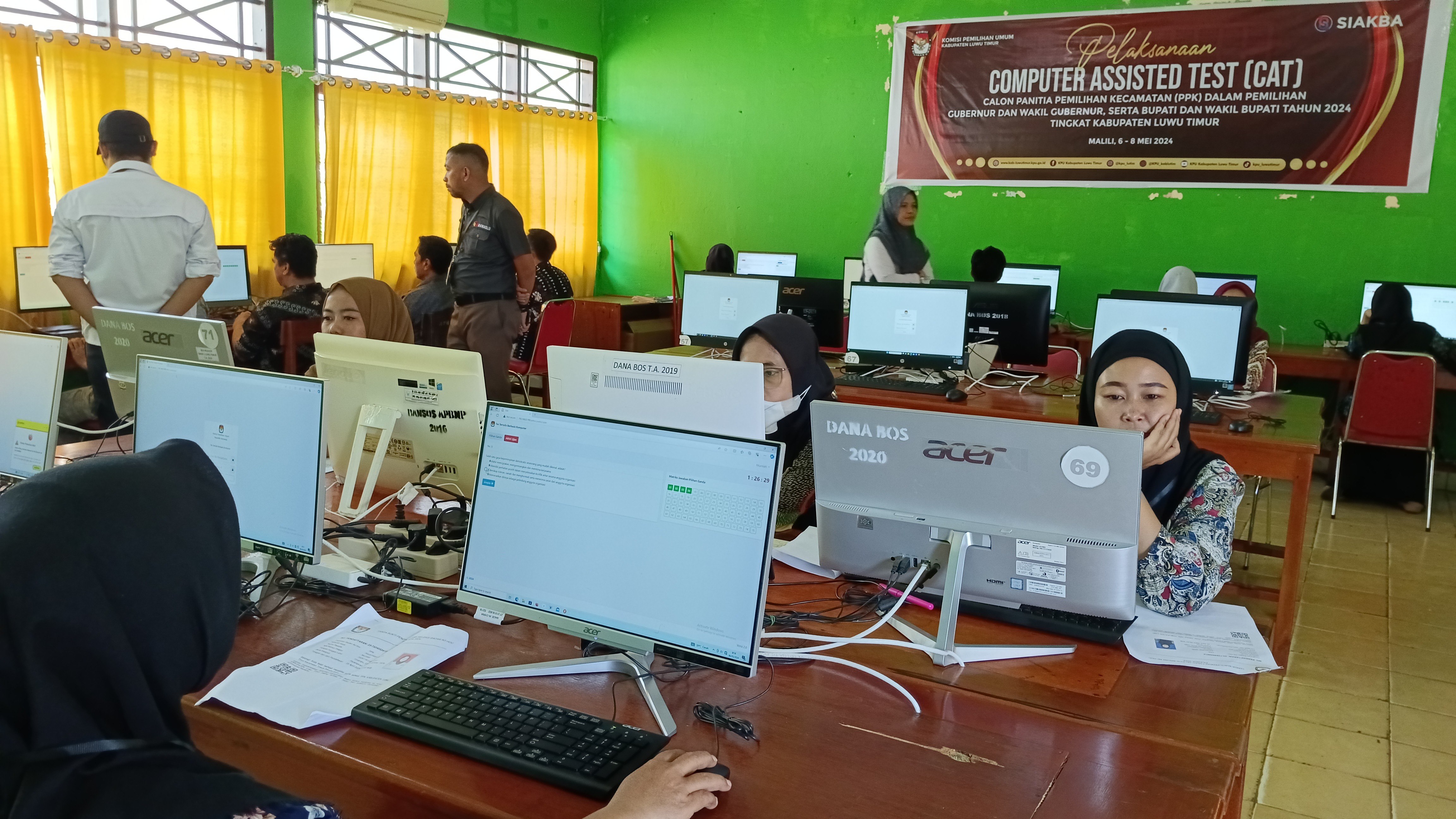 Senin (6/5), Komisi Pemilihan Umum (KPU) Kabupaten Luwu Timur, melaksanakan tes Computer Assisted Test (CAT) bagi calon Anggota Panitia Pemilihan Kecamatan (PPK) yang sebelumnya telah dinyatakan lulus seleksi administrasi. Ratusan calon Anggota PPK Pemilihan Bupati dan Wakil Bupati Luwu Timur Tahun 2024 ini mengikuti tes tulis berbasis komputer di SMA Negeri 1 Luwu Timur. "Hari ini adalah hari pertama kita pelaksanaan tes CAT bagi peserta calon Anggota PPK dan hasilnya bisa langsung diketahui oleh peserta," ujar Indra selaku Koordinator Sosdiklih, Parmas dan SDM. Dia menjelaskan bahwa tes tulis berbasis computer yang diikuti ratusan calon anggota PPK itu dibagi menjadi dua sesi selama tiga hari. "Untuk hari ini terdapat 4 kecamatan yang mengikuti tes CAT yakni Kecamatan Malili, Towuti, Kalaena dan Burau. Hari kedua ada 4 Kecamatan juga Kecamatan Angkona, Nuha, Mangkutana dan Tomoni, serta hari terakhir diikuti 3 Kecamatan, yakni Kecamatan Wasuponda, Wotu, serta Tomoni Timur", jelasnya. Setelah tes tulis ini selesai, lanjut Indra, masing-masing kecamatan akan dipilih 10 orang dengan nilai tertinggi, dan akan mengikuti tahapan selanjutnya yakni tes wawancara dan akan diumumkan lima orang sebagai anggota PPK yang terpilih pada Pilkada Serentak 2024. "Tahapannya setelah tes tulis CAT dilanjutkan tes wawancara, nanti kami umumkan lima besar dan akan dilantik pada 16 Mei 2024," ucap Indra. Dia menyebutkan, total badan Adhoc PPK yang dibutuhkan sebanyak 55 orang dari 11 kecamatan di Luwu Timur. Setiap kecamatan ada lima orang Anggota Panitia Pemilihan Kecamatan yang akan bertugas sebagai penyelenggara Pemilihan Bupati dan Wakil Bupati Luwu Timur tingkat kecamatan. "Mudah-mudahan mereka yang lulus seleksi nantinya dapat memegang teguh regulasi regulasi penyelenggara serta dapat mengemban tugas dengan baik," tutur Indra. Kegiatan tes CAT PPK ini, di pimpin langsung oleh Koordinator Divisi SDM serta Kasubbag Sub Bagian SDM sebagai Penanggung Jawab. Hadir dalam kegiatan ini, Bawaslu Luwu Timur serta Polres Luwu Timur.