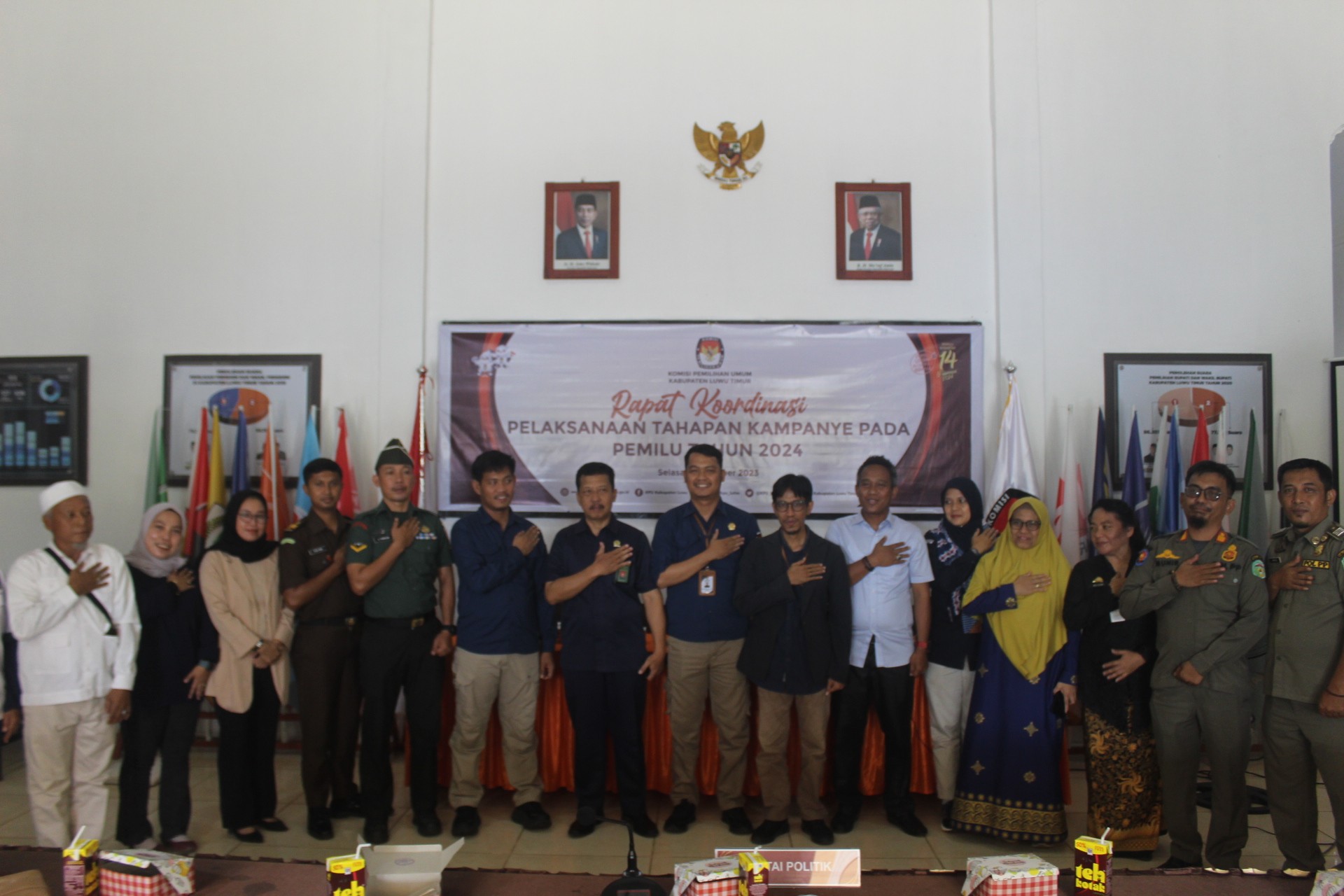 Komisi Pemilihan Umum (KPU) Kabupaten Luwu Timur menggelar Rapat Koordinasi Pelaksanaan Tahapan Kampanye pada Pemilihan Umum 2024 yang berlangsung dikantor KPU Luwu Timur, Selasa (10/10). Rakor itu digelar terkait peraturan KPU Nomor 15 Tahun 2023 tentang kampanye pemilihan umum yang dihadiri Polres Luwu Timur, Dandim 1403 Palopo, Bawaslu Luwu Timur, Kejari Luwu Timur, Pengadilan Negeri Malili, Kesbangpol Luwu Timur, Satpol-PP Luwu Timur, serta perwakilan dari pengurus partai politik peserta Pemilu 2024. Dalam sambutannya (Plh) Ketua KPU Luwu Timur, Indrawanto Paningaran, menyampaikan bahwa tinggal 126 hari lagi sebelum dimulainya tahapan kampanye Pemilu 2024, dan rapat ini menjadi platform untuk membahas sejumlah hal yang menjadi tanggung jawab komisioner KPU. “Kita harus memastikan bahwa segala persiapan dan koordinasi dilakukan dengan baik demi kelancaran pelaksanaan Pemilu,” ujarnya. Indra menegaskan pentingnya keterlibatan semua pihak dalam memastikan keberhasilan Pemilu 2024. “Kampanye akan dimulai pada tanggal 28 November hingga 10 Februari, dan kami berharap semua pihak yang hadir dapat memberikan informasi yang baik untuk memastikan kesuksesan pelaksanaan Pemilu 2024 ini,” tambahnya. Dalam konteks ini, Indra juga menyoroti potensi ancaman yang dapat muncul selama Pemilu. “Kami sadar bahwa ada berbagai ancaman yang mungkin terjadi, oleh karena itu, kami perlu memberikan persepsi yang tepat kepada masyarakat terkait pelaksanaan Pemilu 2024,” ungkap Indrawan. Rapat Koordinasi ini diselenggarakan, selain sebagai langkah dalam memberikan informasi kepada peserta Pemilu maupun stakeholder, terkait rancangan APK (Alat Peraga Kampanye) juga sebagai langkah proaktif KPU Luwu Timur untuk mencegah terjadinya hal-hal yang tidak diinginkan selama tahapan kampanye dan Pemilu. Semua pihak diharapkan dapat bekerja sama untuk menciptakan lingkungan yang kondusif dan menjaga integritas Pemilu 2024.