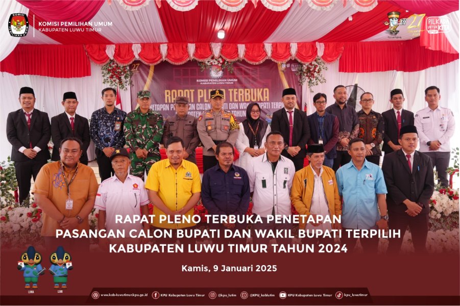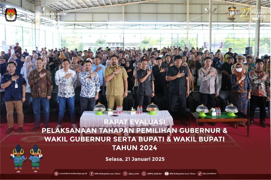 Komisi Pemilihan Umum (KPU) Kabupaten Luwu Timur menggelar Rapat Evaluasi Pelaksanaan Pemilihan Gubernur dan Wakil Gubernur serta Bupati dan Wakil Bupati Tahun 2024, bertempat di Lapangan Teknis Indoor Malili, Selasa (21/1). Dalam kegiatan Rapat Evaluasi ini KPU Kabupaten Luwu Timur menghadirkan Forkopimda dalam hal ini Bupati Luwu Timur, DPRD Luwu Timur, Polres Luwu Timur, Dandim 1403 Palopo, Pengadilan Negeri Malili, Bawaslu Luwu Timur, Camat Se-Kabupaten Luwu Timur, PPK, Sekretariat PPK serta PPS. Dibuka secara resmi oleh Ketua KPU Kabupaten Luwu Timur, Irfan Lahabu dalam sambutannya mengatakan kegiatan ini bertujuan mengkaji seluruh tahapan Pilkada serentak tahun 2024, mulai dari pemilihan Gubernur dan Wakil Gubernur hingga Bupati dan Wakil Bupati. Evaluasi ini juga mencakup tantangan serta capaian positif selama penyelenggaraan Pilkada dilaksanakan. "Kami ingin memastikan apakah Pilkada 2024 sudah berjalan sesuai harapan atau ada hal yang perlu diperbaiki. Evaluasi ini penting untuk menjaga kualitas demokrasi yang ada di Kabupaten Luwu Timur", ujarnya. Menurut Irfan, salah satu aspek penting dalam penyelenggaraan Pilkada adalah koordinasi dengan berbagai instansi terkait. “Pilkada ini bukan hanya tanggung jawab KPU atau Bawaslu sebagai penyelenggara. Sinergi dengan lembaga terkait sangat diperlukan untuk menjamin kelancaran proses demokrasi,” katanya. Lanjutnya, menegaskan bahwa evaluasi ini merupakan bagian dari agenda yang telah direncanakan sejak awal. Rapat ini menjadi momen penting sebelum masa tugas PPK dan PPS berakhir. "Kami ingin mendengar langsung dari PPK maupun dari PPS terkait pengalaman selama Pilkada. Hal ini akan menjadi masukan berharga untuk penyelenggaraan Pilkada berikutnya", lanjutnya. Irfan juga menyampaikan, apresiasinya atas keberhasilan Pilkada 2024 di tengah berbagai tantangan. Ia menegaskan bahwa proses Pilkada berjalan lancar, profesional, dan tetap mematuhi prinsip demokrasi yang transparan serta akuntabel. "Kami bersyukur dan bangga karena kita mampu melaksanakan seluruh tahapan Pilkada 2024 dengan baik sesuai aturan" Sementara itu ditempat yang sama Wakil Bupati Luwu Timur, Akbar mengapresiasi kinerja KPU terkhususnya kinerja PPK dan PPS. “Mewakili Bapak Bupati, Saya mengucapkan terima kasih dan bangga kepada seluruh anggota KPU terkhususnya PPK dan PPS yang menjadi ujung tombak dari pesta demokrasi ini dan bekerja maksimal dalam mengemban tanggung jawab yang telah diberikan sehingga pelaksanaan pilkada berjalan dengan lancar,” tutur Akbar. Lebih lanjut, Akbar mengungkapkan tujuan dari rapat guna mengevaluasi kerja badan hock PKK, PPS dan Sek PPK. "Evaluasi yang kita laksanakan hari ini memiliki peran yang sangat penting. Olehnya itu, melalui rapat ini kita bersama-sama dapat mengidenfitikasi berbagai kelebihan dan kekurangan yang telah dicapai dan menyusun langkah-langkah perbaikan yang lebih baik", ungkap Akbar. Diakhir kata, Wakil Bupati Akbar berharap kedepannya masyarakat Luwu Timur terus bersinergi dalam membangun Bumi Batara Guru yang jauh lebih maju dan demokratis. Dalam kegiatan Rapat Evaluasi ini KPU Kabupaten Luwu Timur memberikan penghargaan kepada Forkopimda Luwu Timur, serta PPK Kecamatan Luwu Timur.