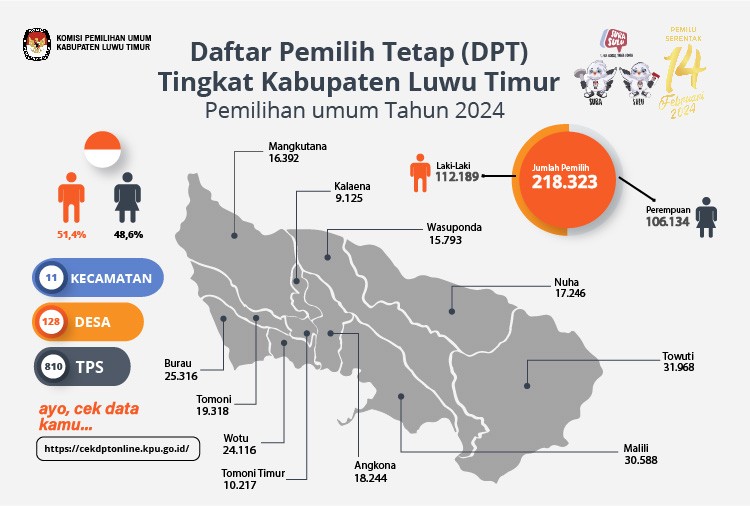 Infografis Daftar Pemilih Tetap (DPT) Pada Pemilu Tahun 2024 Kamis, 22 Juni 2023 00:00 425 Berikut ini infografis Daftar Pemilih Tetap (DPT) Tingkat Kabupaten Luwu Timur Pada Pemilu Tahun 2024 Baca Selengkapnya